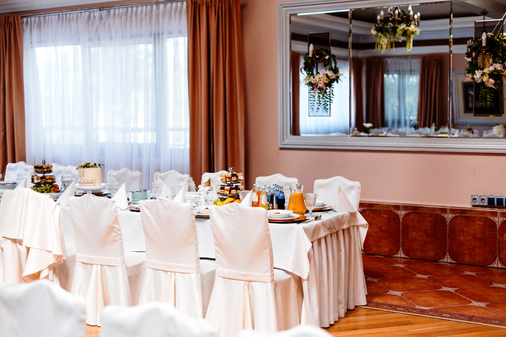 Nasz zespół z zaangażowaniem i dbałością o każdy detal pomoże Wam stworzyć uroczystość idealnie dopasowaną do Waszych oczekiwań. Oferujemy przestronne sale, w których z łatwością pomieścimy zarówno liczne grono rodziny, jak i kameralne spotkania w mniejszym gronie. Nasz obiekt łączy elegancję z przytulnością, tworząc ciepłe i wyjątkowe tło dla tego ważnego dnia.